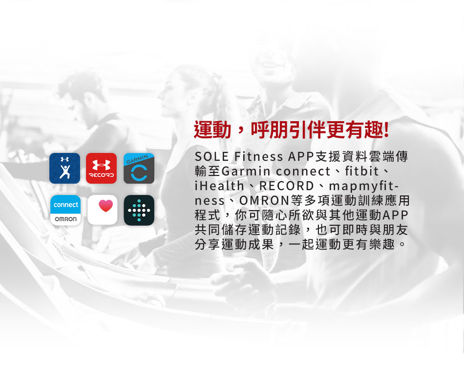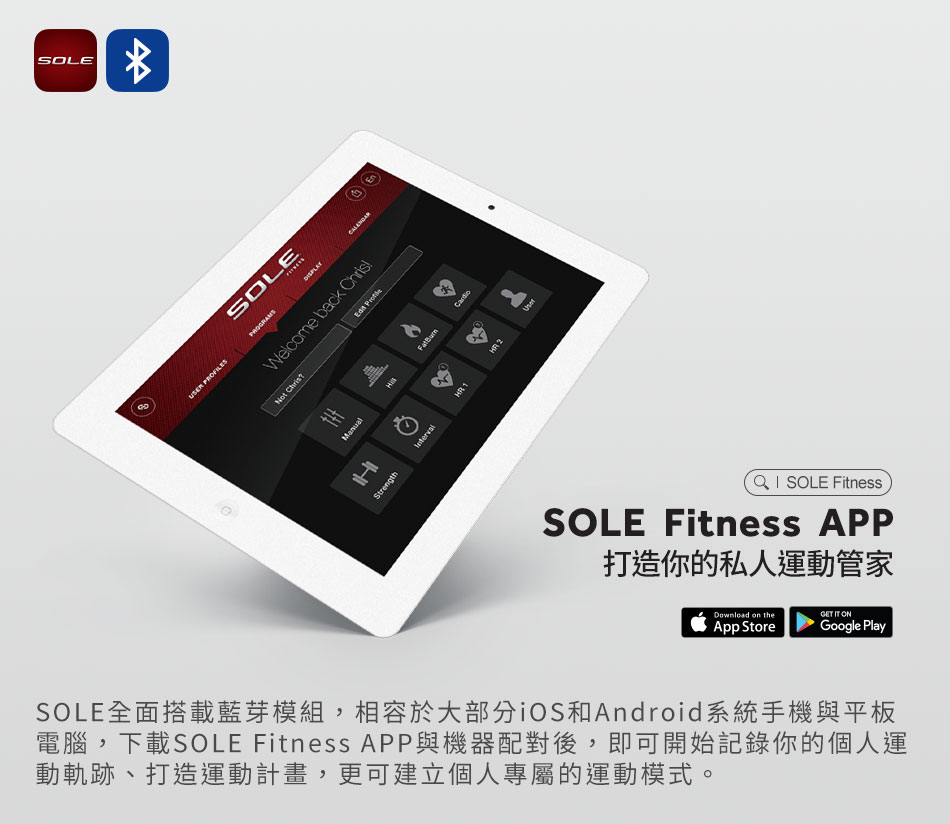 ◆ 獨家 SOLE APP 物聯功能,可與 Healthkit、fitbit app同步